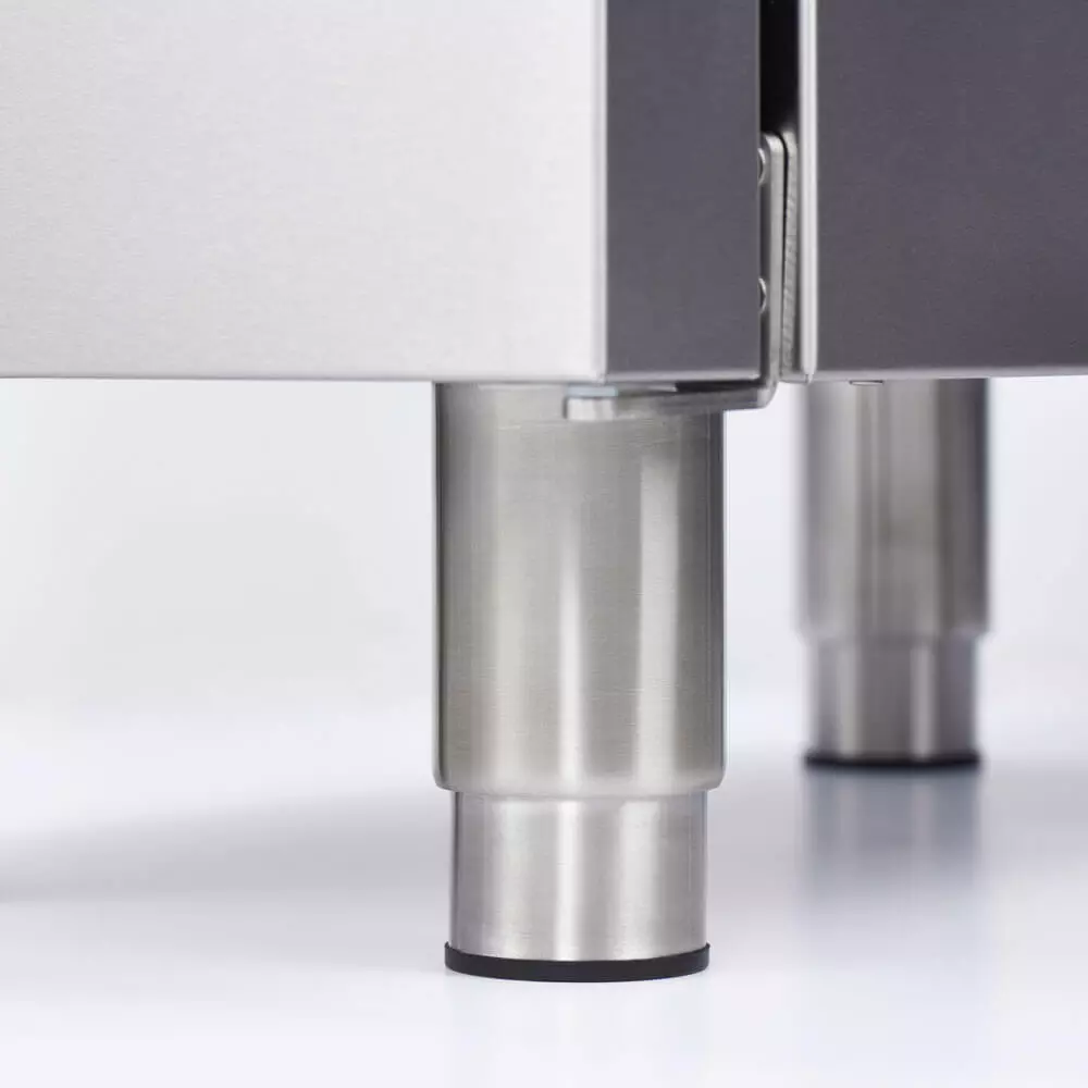 - Panel przedni grawerowany laserowo – trwałe, czytelne oznaczenia odporne na ścieranie i intensywne czyszczenie, ważne w kuchniach o dużym obciążeniu.