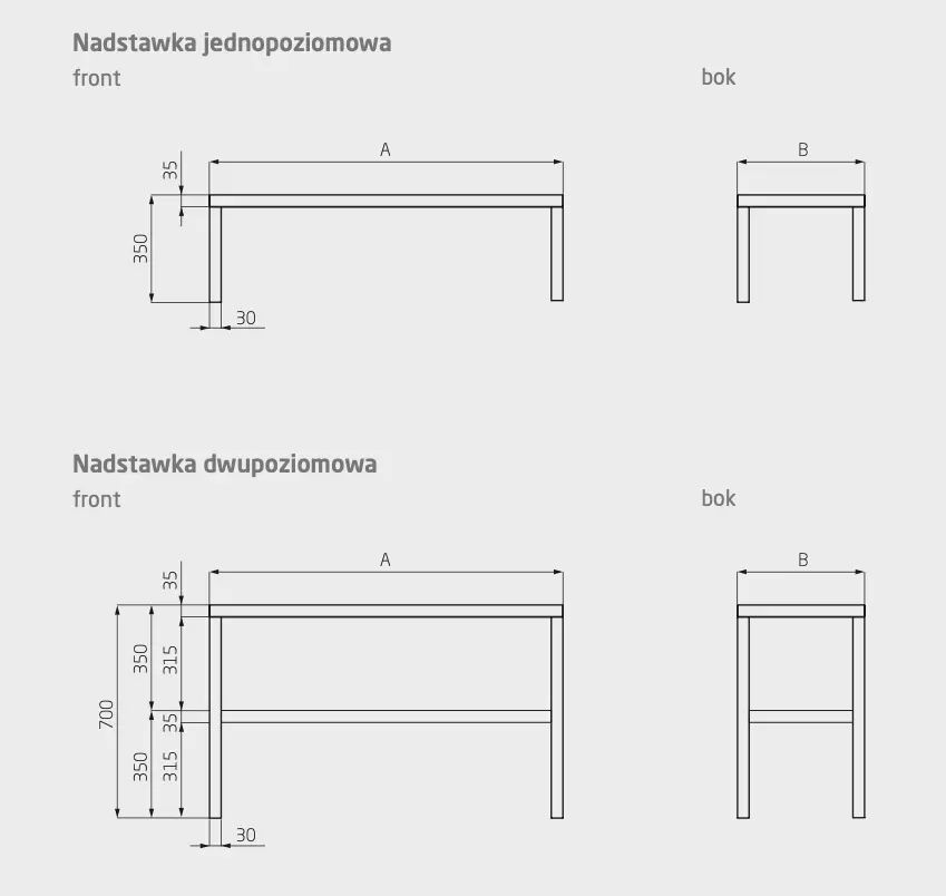 Nadstawka na stół jednopoziomowa POL-501, 700x400x(H)350mm