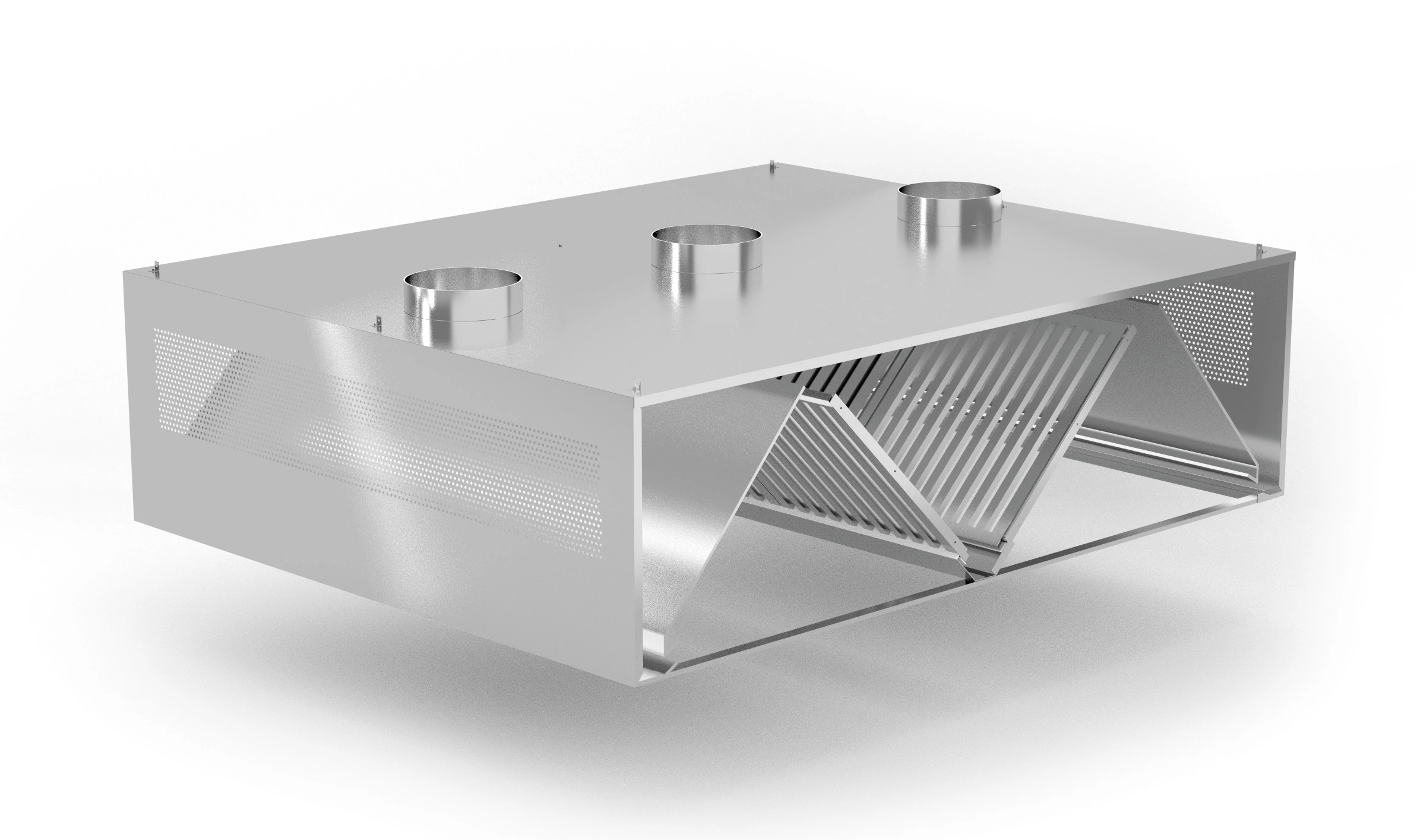 - Poszycia korpusów w okapach są wykonywane z blachy nierdzewnej ferrytycznej AISI 430 o grubości min. 0,8 mm, metodą spawania i zgrzewania, co zapewnia wysoką sztywność, trwałość i szczelność konstrukcji.