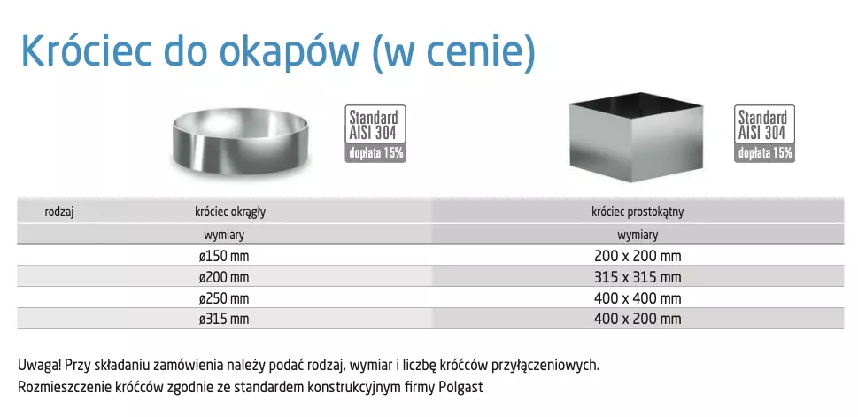 - Opcje wykonania: stal nierdzewna AISI 304 austeniczna (+15%)