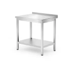 Profesjonalny stół przyścienny ze stali nierdzewnej z półką dolną HENDI Kitchen Line 800x600 to wytrzymały stół roboczy gastronomiczny do kuchni profesjonalnych, idealny do pracy w restauracjach, barach, stołówkach, firmach cateringowych oraz innych lokali gastronomicznych. Blat o wymiarach 800x600 mm, głębokość 600 mm i rant tylny zabezpieczający ścianę przed zabrudzeniem zapewniają wygodną, ergonomiczną i higieniczną przestrzeń roboczą przy ścianie.