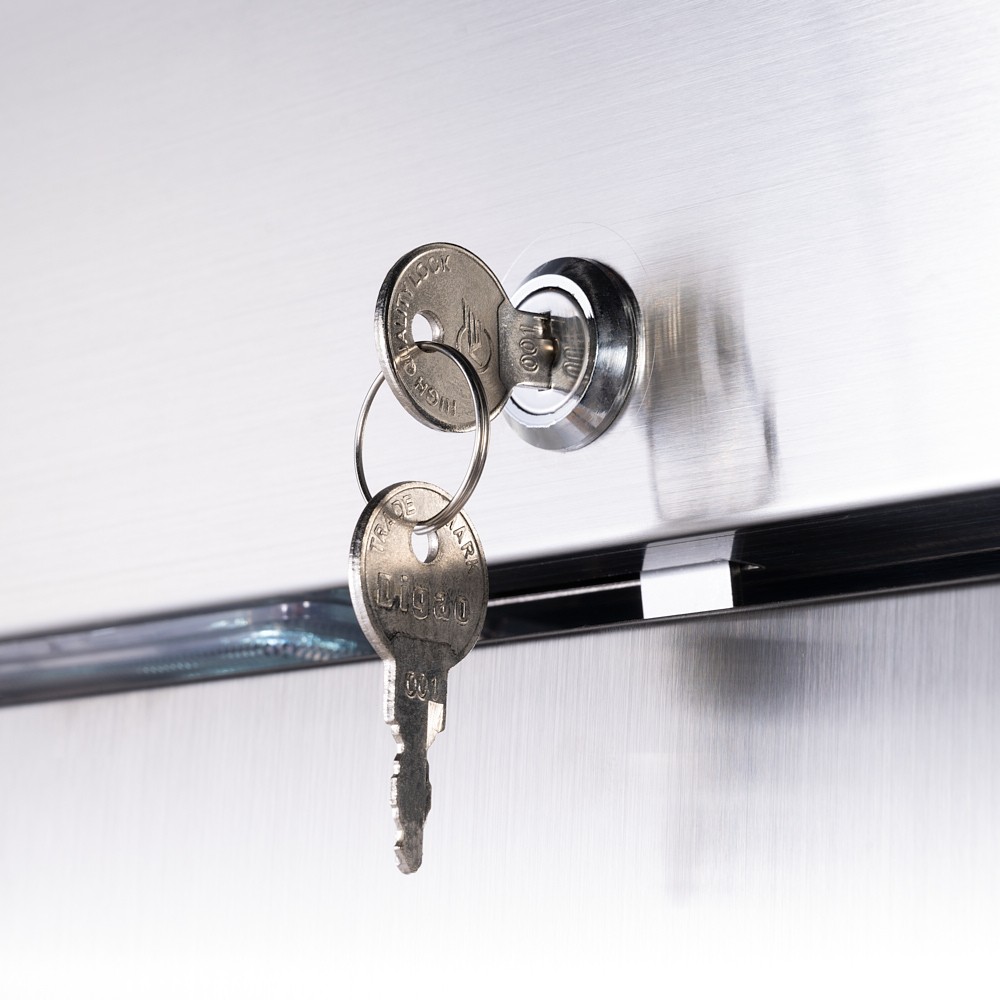 - Samodomykające się drzwi z zamkiem: Zwiększają bezpieczeństwo przechowywania produktów i minimalizują straty zimna, co przekłada się na oszczędność energii elektrycznej.