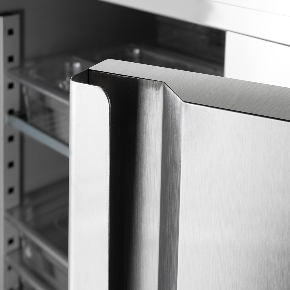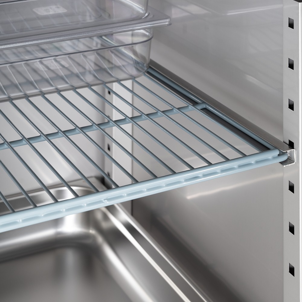 - Wytrzymała konstrukcja ze stali nierdzewnej: Komora chłodząca i obudowa wykonane ze stali nierdzewnej zapewniają trwałość, łatwość czyszczenia oraz spełniają rygorystyczne standardy higieny gastronomicznej.
