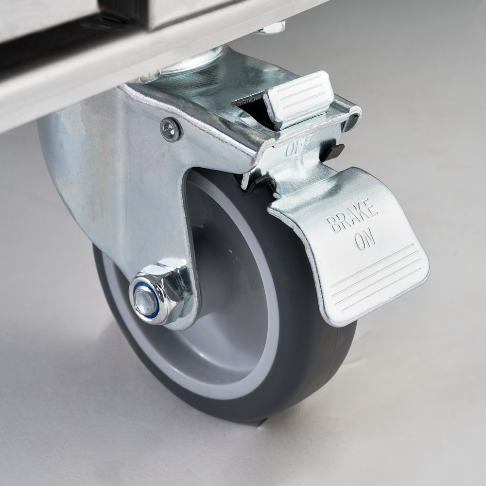- Mobilność i stabilność: Przednie kółka wyposażone w hamulec, co ułatwia przemieszczanie i stabilizację, zwiększając funkcjonalność w dynamicznym środowisku.