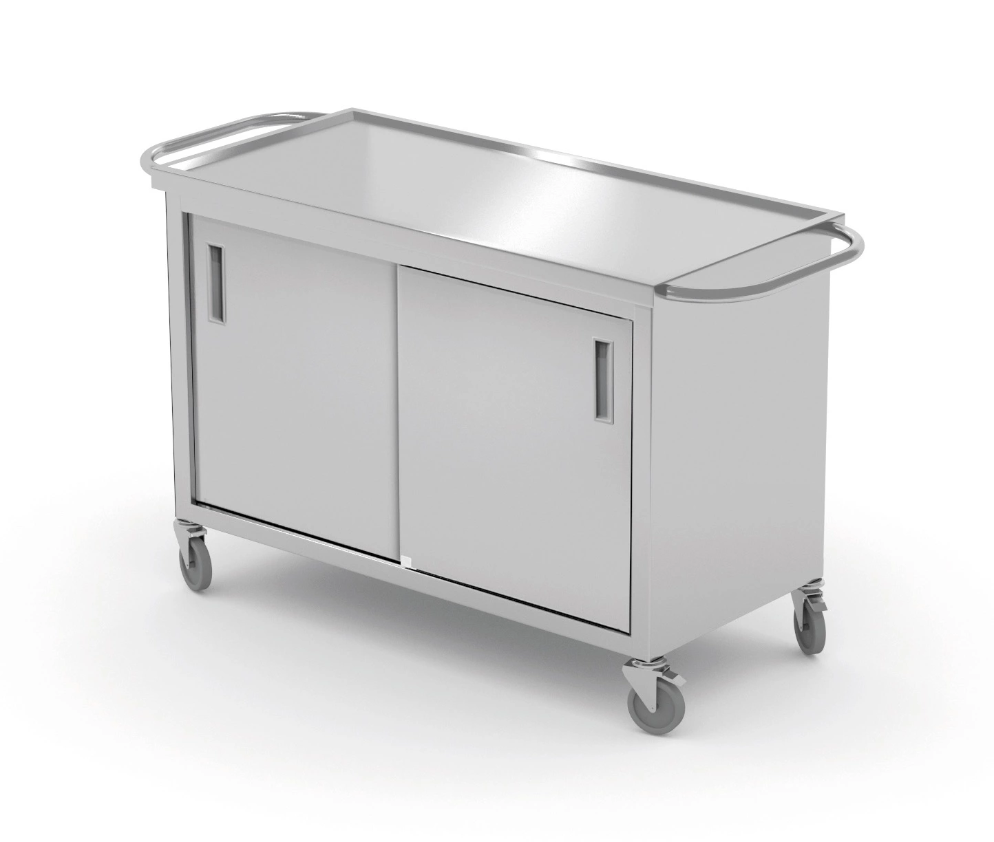 Wózek z szafką z drzwiami suwanymi POL-440 to profesjonalny wózek gastronomiczny ze stali nierdzewnej, łączący funkcję mobilnego blatu roboczego i zamykanej szafki. Idealnie sprawdza się w restauracjach, hotelach, barach, firmach cateringowych oraz innych lokalach gastronomicznych, gdzie liczy się bezpieczne przechowywanie wyposażenia, ergonomia pracy i wysoki standard higieny.